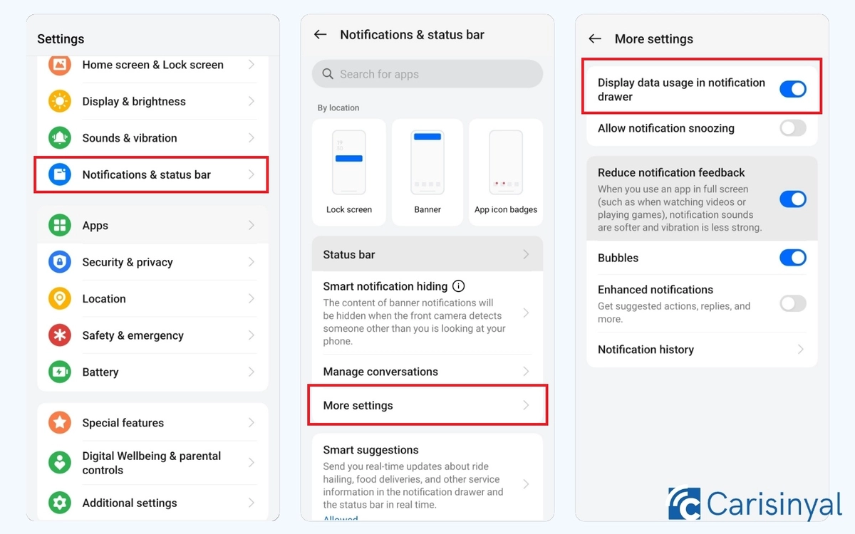 In addition, realme phones allow you to display data usage information on the status bar or through notifications, helping you stay more aware of your data habits.