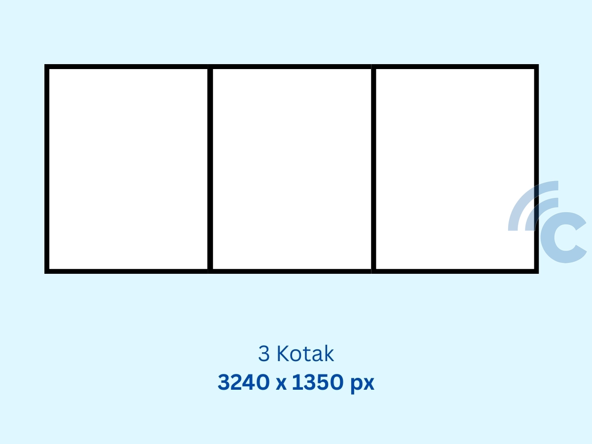 Untuk mendapatkan desain terbaik dengan menggunakan 3 kotak, silakan gunakan gambar dengan aspek rasio 12:5 dan resolusi minimal 3240x1350 piksel.