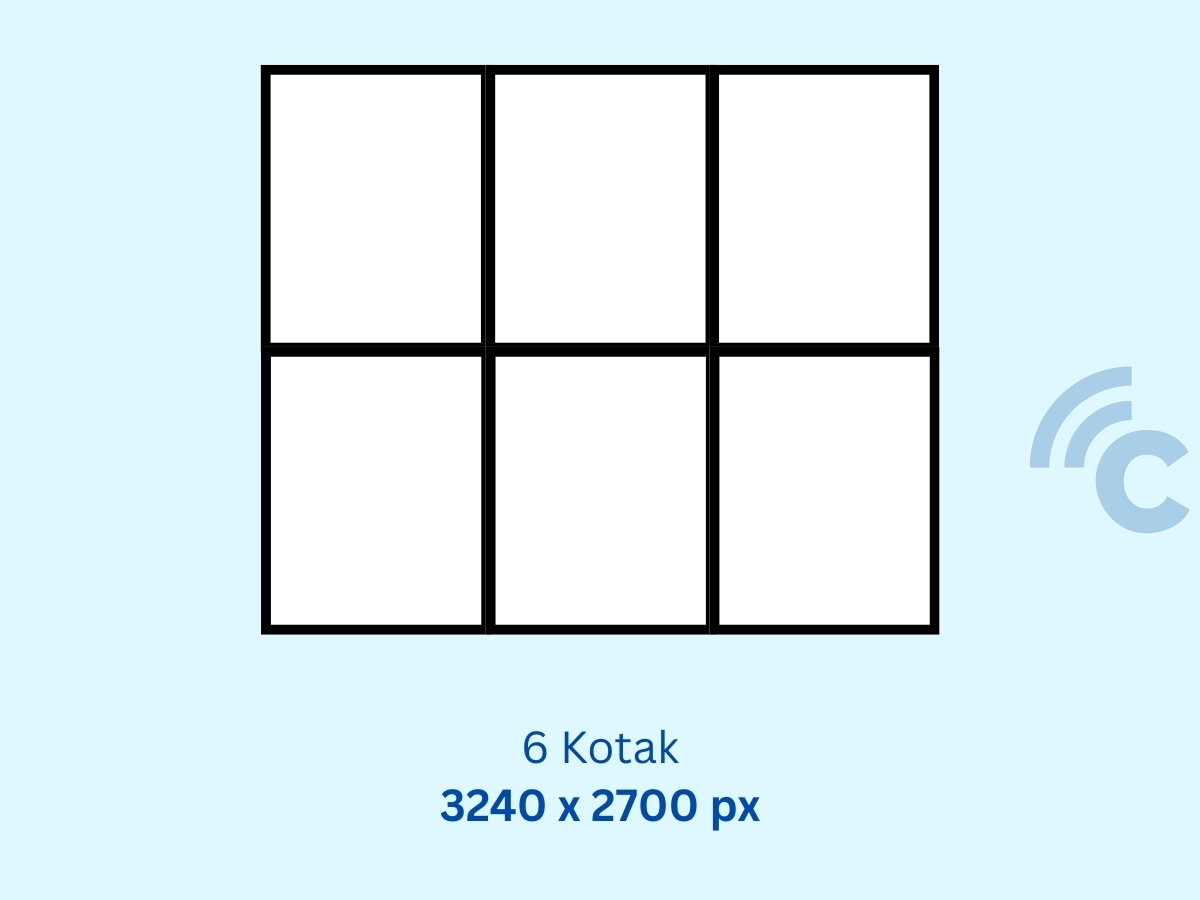 Untuk feed 6 kotak ini, minimum resolusi gambar yang harus Anda gunakan adalah 3240x2700 piksel dengan aspek rasio 6:5.