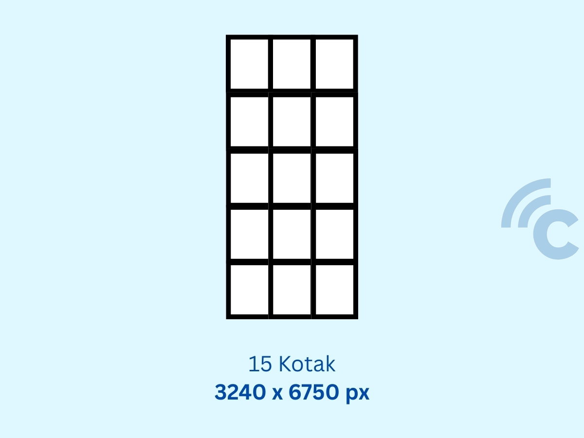 Desain 15 kotak ini membutuhkan gambar vertikal dengan resolusi minimal 3240x6750 piksel dengan aspek rasio 12:25.